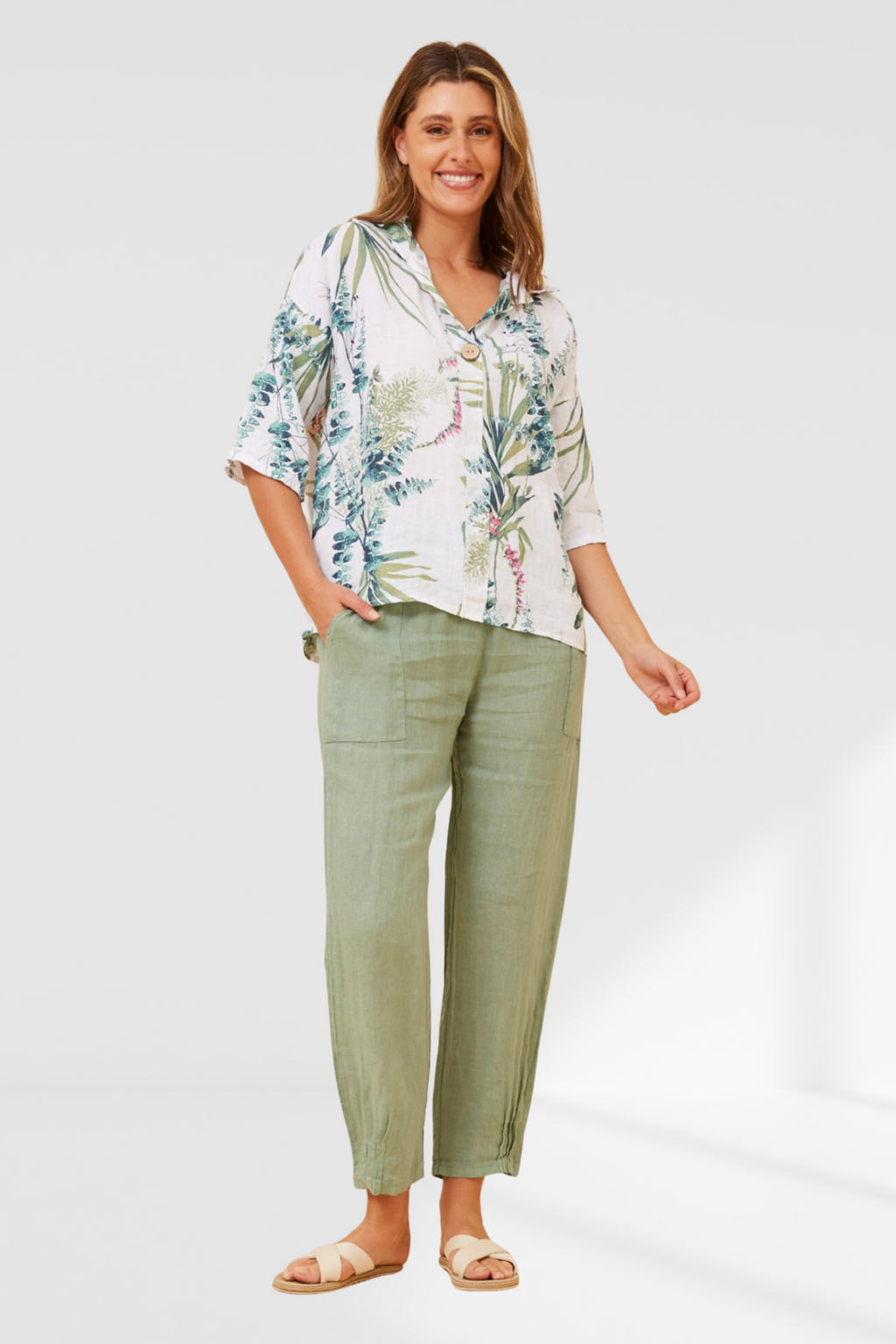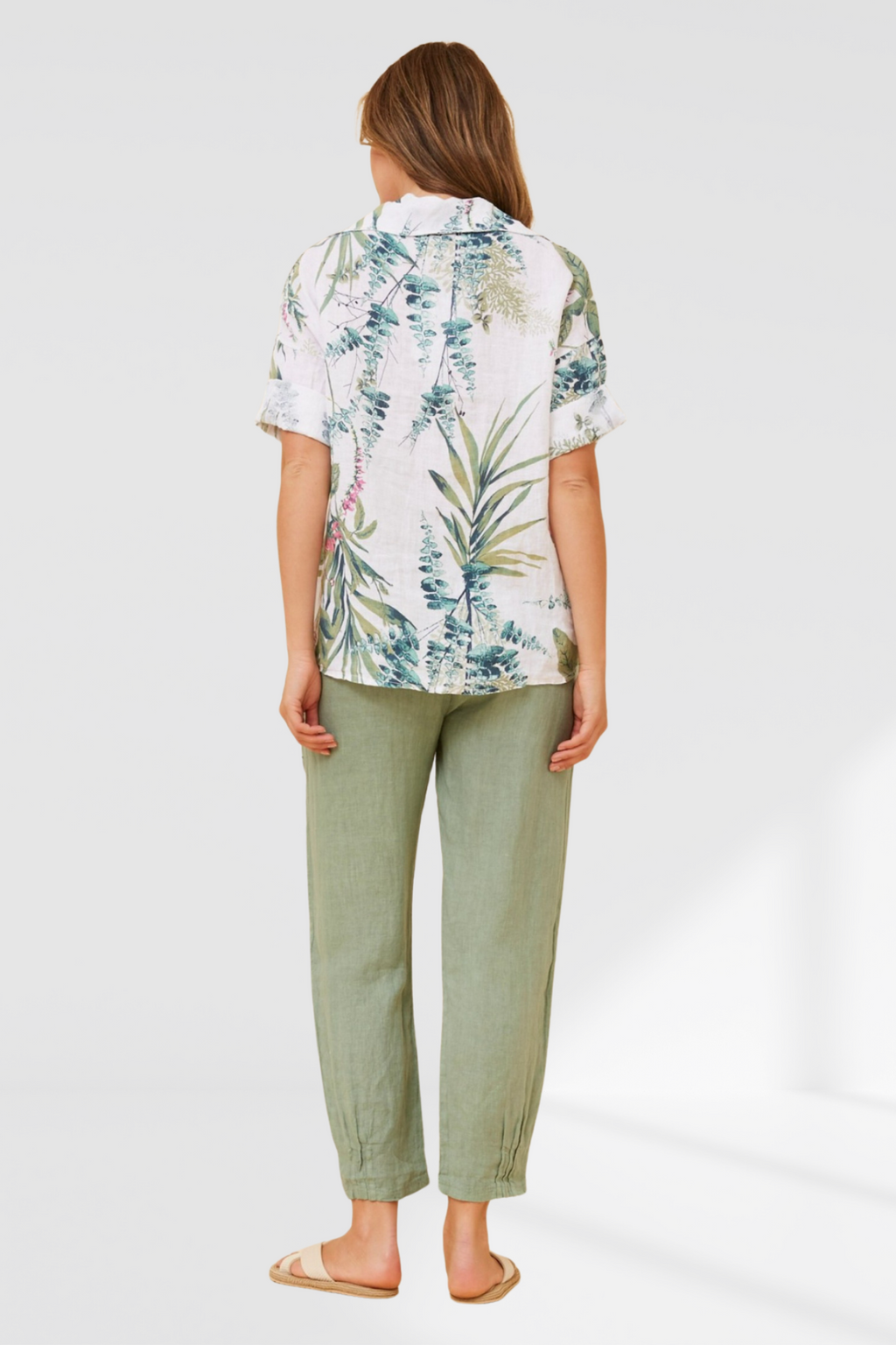 A breezy staple for effortless styling, the Rae-Bella Shirt works with everything from denim to linen. Its relaxed oversized fit and leafy print make it perfect for sunny days and laid-back layering.