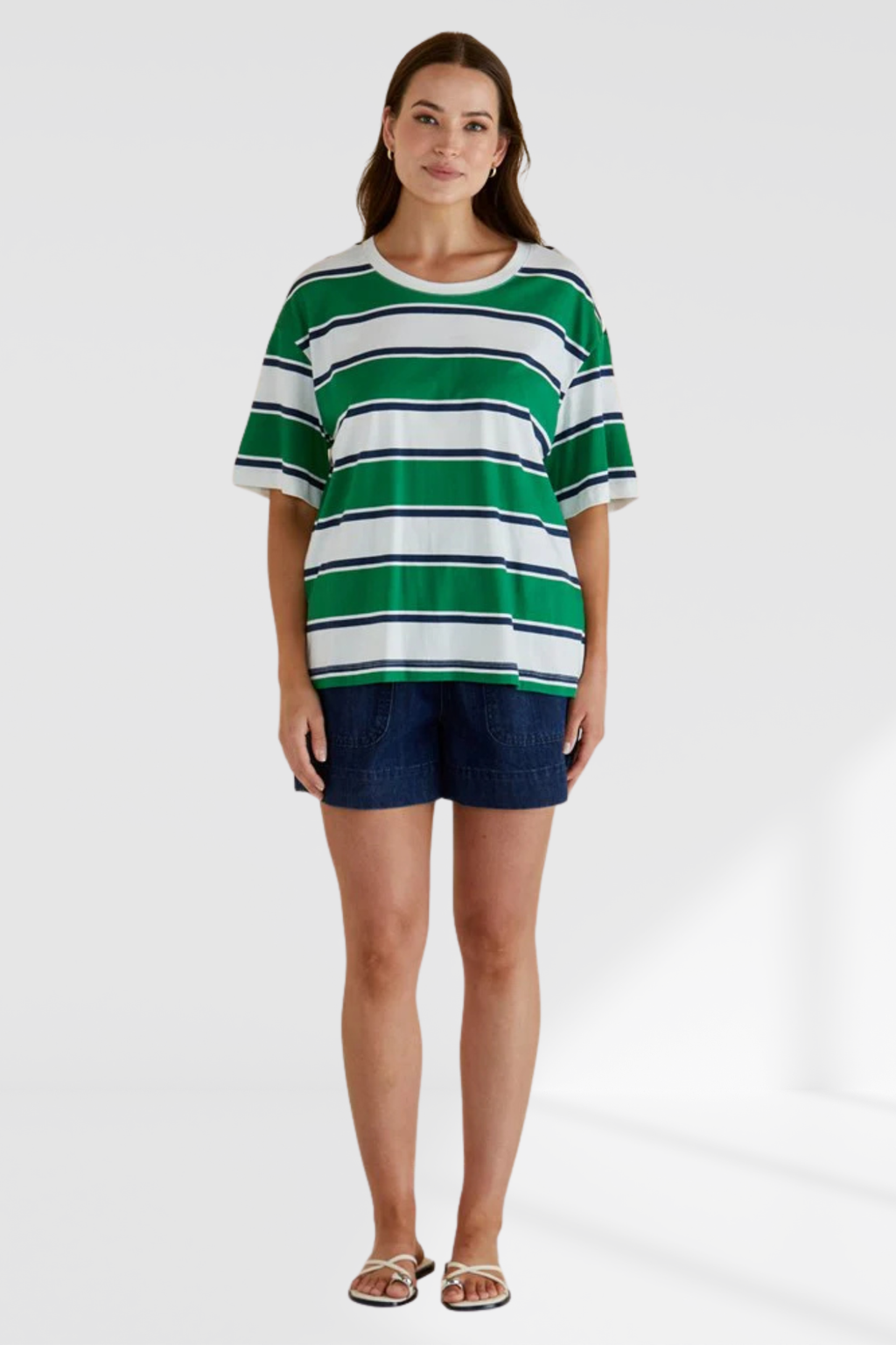 Relax Boxy Tee - Navy/Green Stripe | Betty Basics