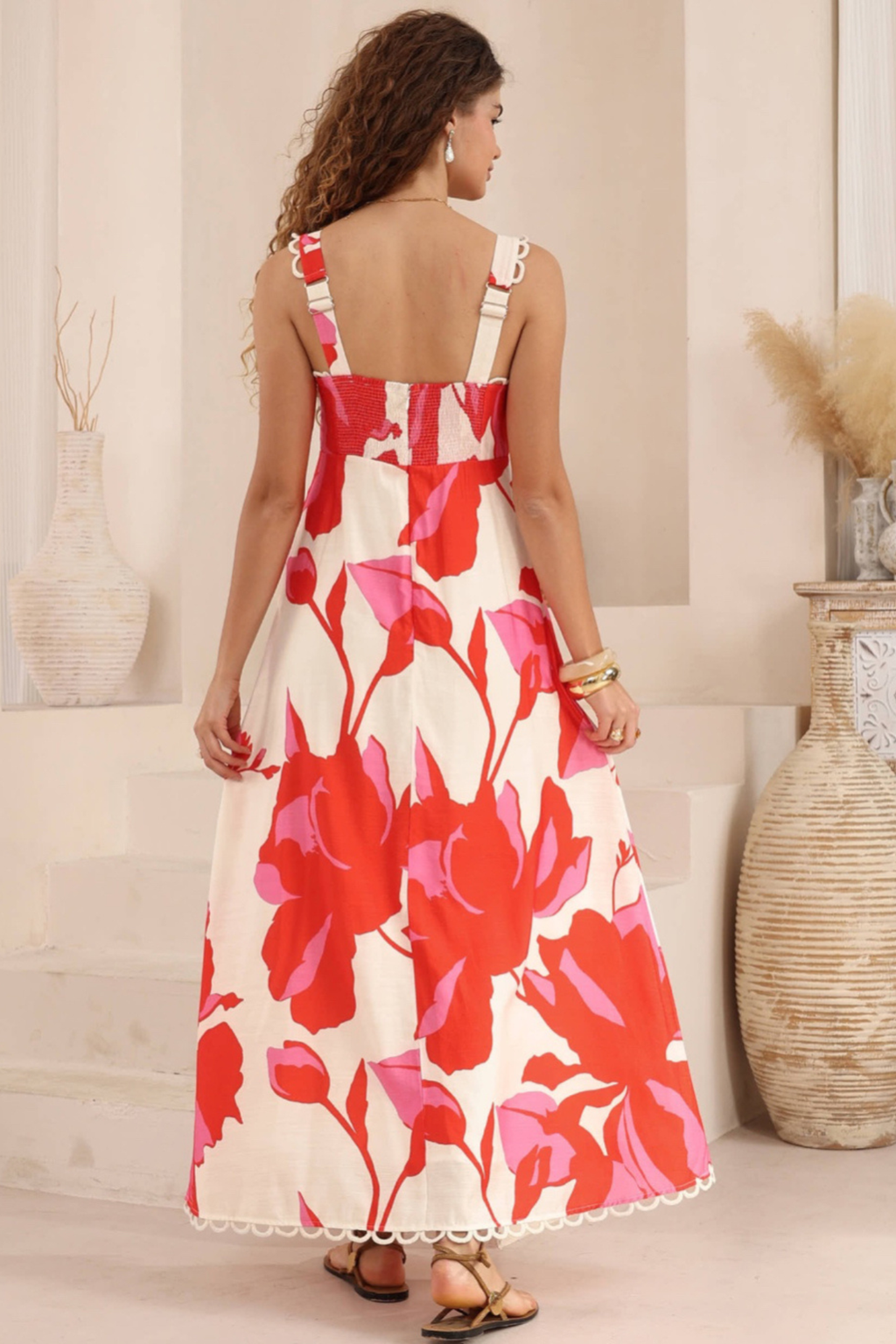 Light and beautifully feminine, the Capri Dress is designed with a structured bodice and flowing maxi skirt for effortless elegance. Featuring a straight neckline, adjustable straps and subtle crochet trim, it’s the perfect piece for warm days, holidays and long summer evenings.